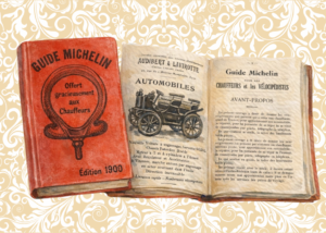 Pour encourager les automobilistes à parcourir davantage de kilomètres – et donc à user plus de pneus – les frères Michelin imaginent un livret pratique offert avec leurs produits. Tiré à 35 000 exemplaires, le guide rouge originel compte près de 400 pages. Il réunit toutes les informations nécessaires au voyageur : adresses de garagistes, stations de carburant, cartes routières, médecins, hôtels ou bureaux de poste. On y trouve même des conseils pour réparer son véhicule ou changer un pneu.